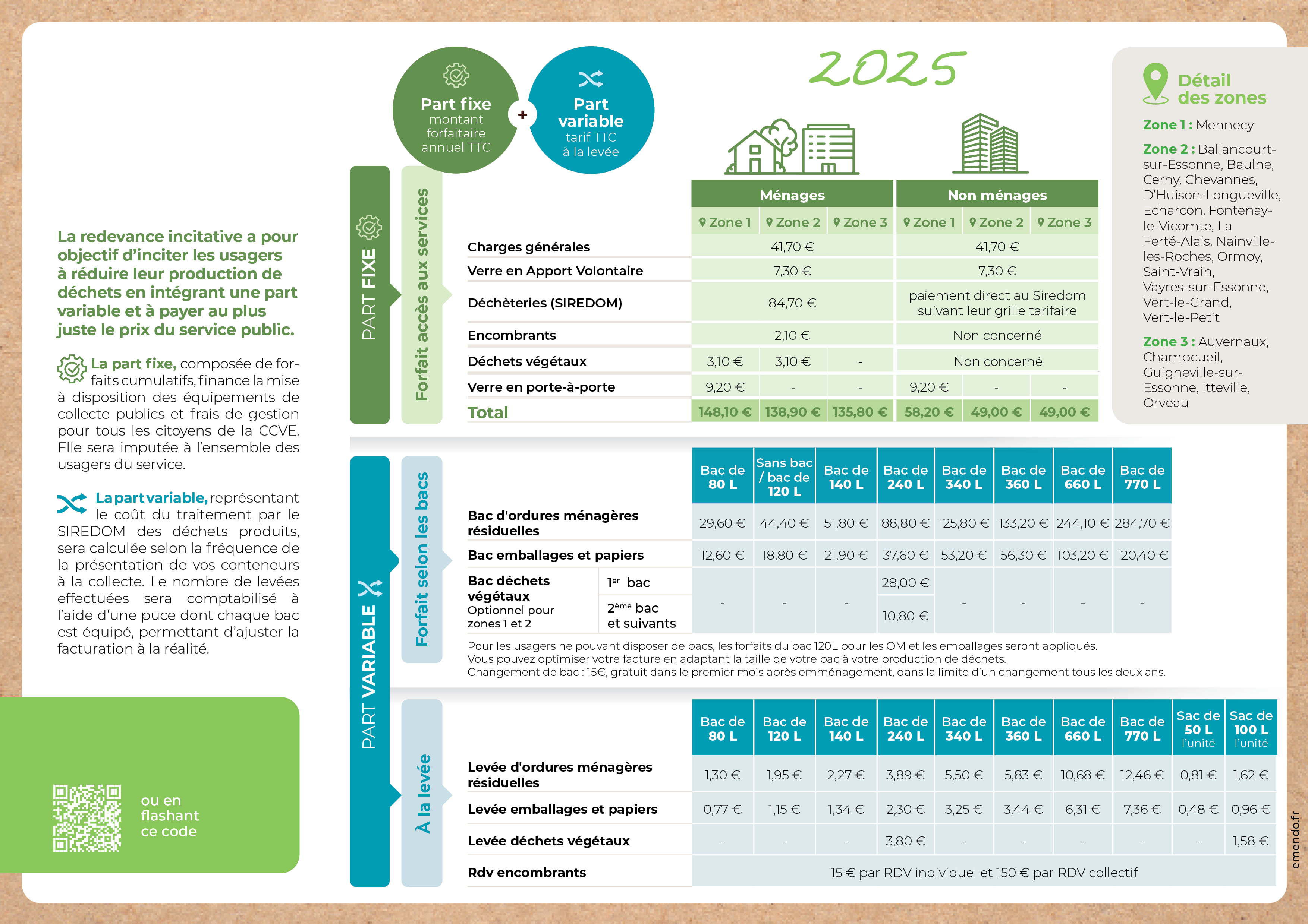 Les tarifs ci-dessous s'appliquent pour les levées réalisées à partir du 1er janvier 2025.